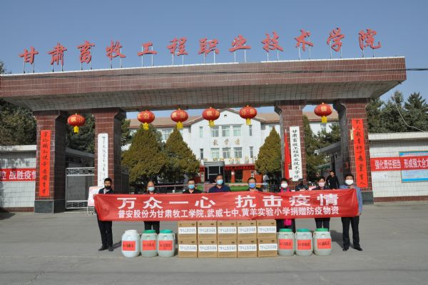 3月20日上午,普安股份向甘肅畜牧工程職業(yè)技術(shù)學(xué)院、武威第七中學(xué)、涼州區(qū)黃羊?qū)嶒炐W(xué)捐贈84消毒液、75%酒精等一批防疫物資,助力疫情防控工作。這也是疫情發(fā)生后,普安股份彰顯國企擔(dān)當(dāng),助力疫情防控的又一次愛心捐贈。