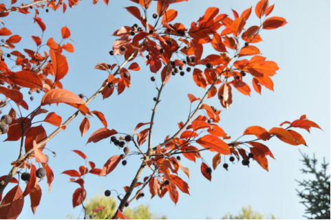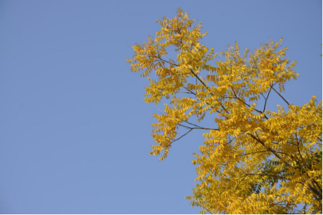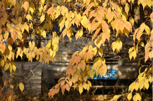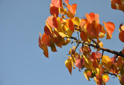 深秋,風(fēng)兒起,葉兒落。那一片一片紅黃相間的精靈,在清明的天空,裊裊娜娜,身姿曼妙。