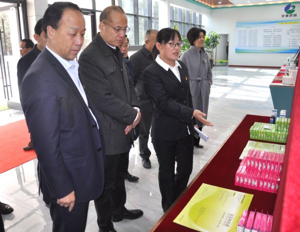2月23日下午,省科技廳黨組書記、廳長(zhǎng)張世榮一行到甘肅普安制藥股份有限公司調(diào)研公司科技、研發(fā)、生產(chǎn)經(jīng)營(yíng)、宣肺止嗽合劑擴(kuò)產(chǎn)改造項(xiàng)目及醫(yī)藥中間體擬建項(xiàng)目等情況并指導(dǎo)工作。省科技廳黨組成員、駐廳紀(jì)檢監(jiān)察組組長(zhǎng)張慧春,中科院蘭州分院院長(zhǎng)肖國(guó)青,武威市委副書記、市長(zhǎng)周偉,武威市政府副市長(zhǎng)唐修亞陪同調(diào)研。