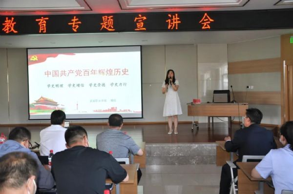 6月25日,按照武威市委統(tǒng)一安排,進(jìn)一步把黨史學(xué)習(xí)教育作為增強(qiáng)“四個(gè)意識(shí)”、堅(jiān)定“四個(gè)自信”、做到“兩個(gè)維護(hù)”的重要檢驗(yàn),甘肅普安制藥股份有限公司、甘肅省農(nóng)業(yè)工程技術(shù)研究院、甘肅農(nóng)墾藥物堿廠有限公司三個(gè)單位聯(lián)合舉辦了黨史學(xué)習(xí)教育專(zhuān)題宣講會(huì)。會(huì)議邀請(qǐng)武威市委宣講團(tuán)成員、武威職業(yè)學(xué)院講師魏玲作黨史學(xué)習(xí)教育專(zhuān)題宣講——《中國(guó)共產(chǎn)黨百年輝煌歷史》。