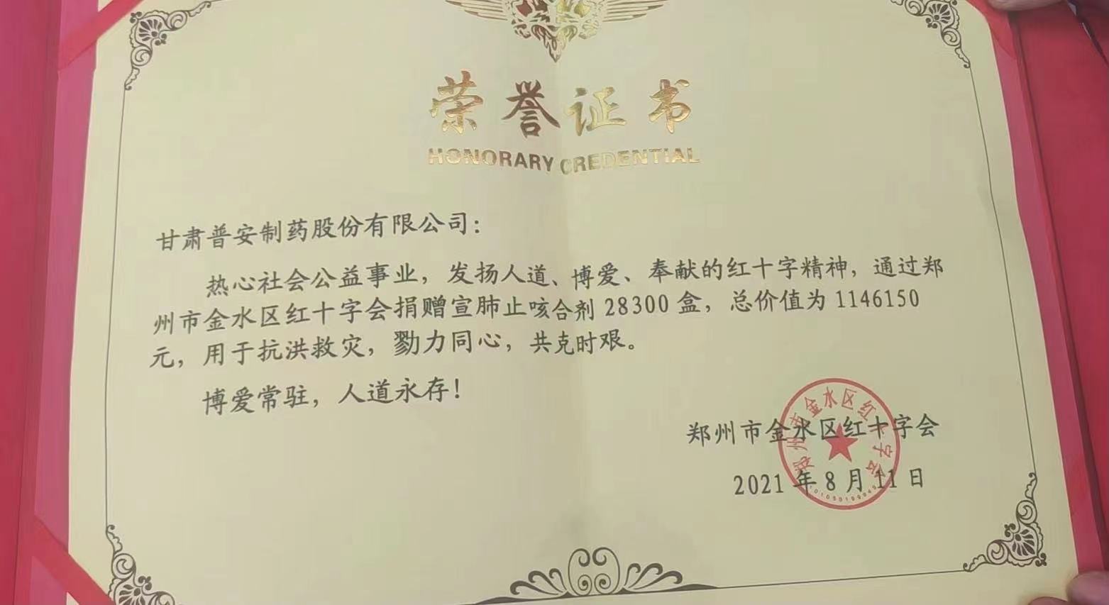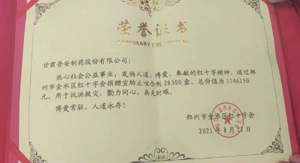 近期,國內(nèi)多地相繼發(fā)生新冠疫情,疫情防控形勢非常嚴(yán)峻、復(fù)雜,而河南省多地又受到洪澇災(zāi)害影響,洪澇災(zāi)害后面臨著災(zāi)情、疫情雙重挑戰(zhàn)。為履行社會責(zé)任,彰顯“一方有難,八方支援”的擔(dān)當(dāng),作為國有企業(yè),甘肅藥業(yè)集團(tuán)普安制藥會同中華中醫(yī)藥學(xué)會第一時間組織抗疫物資的捐贈(價值114.6萬元的藥品)供災(zāi)后防疫使用,助力河南省做好災(zāi)后疫情防控工作。