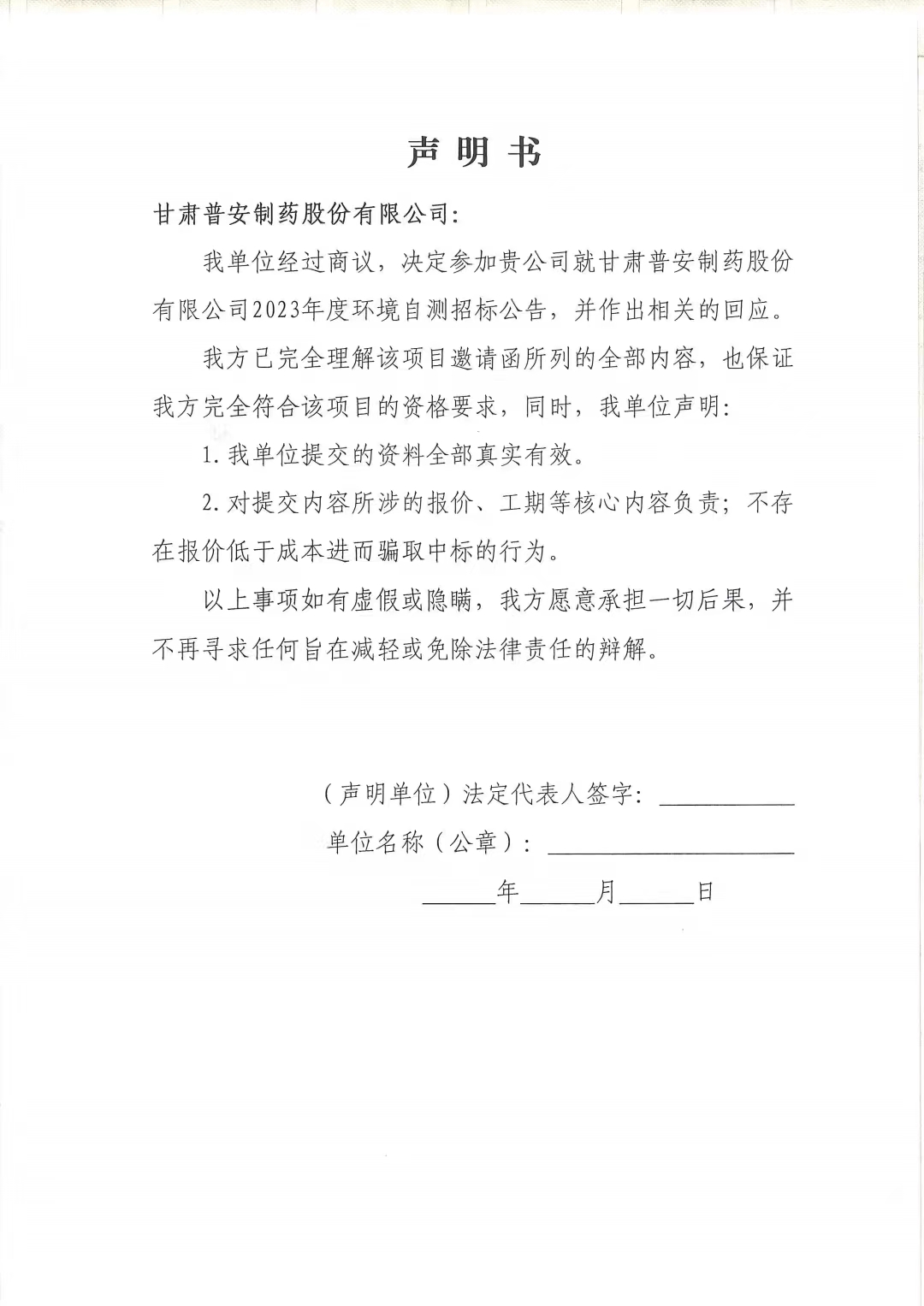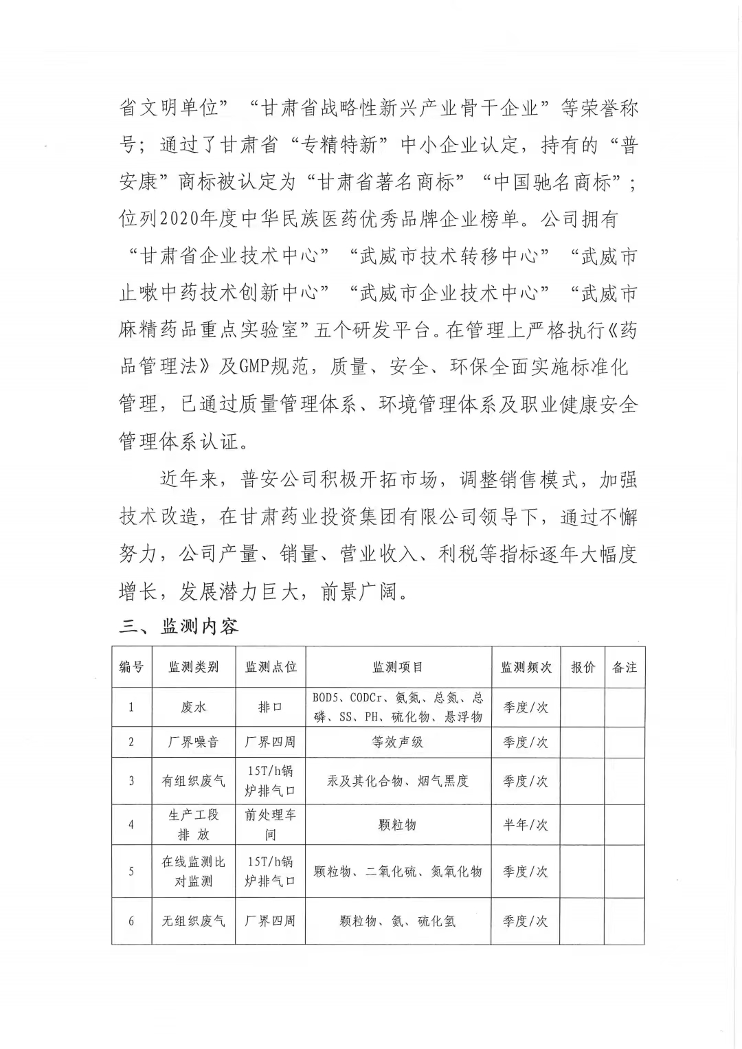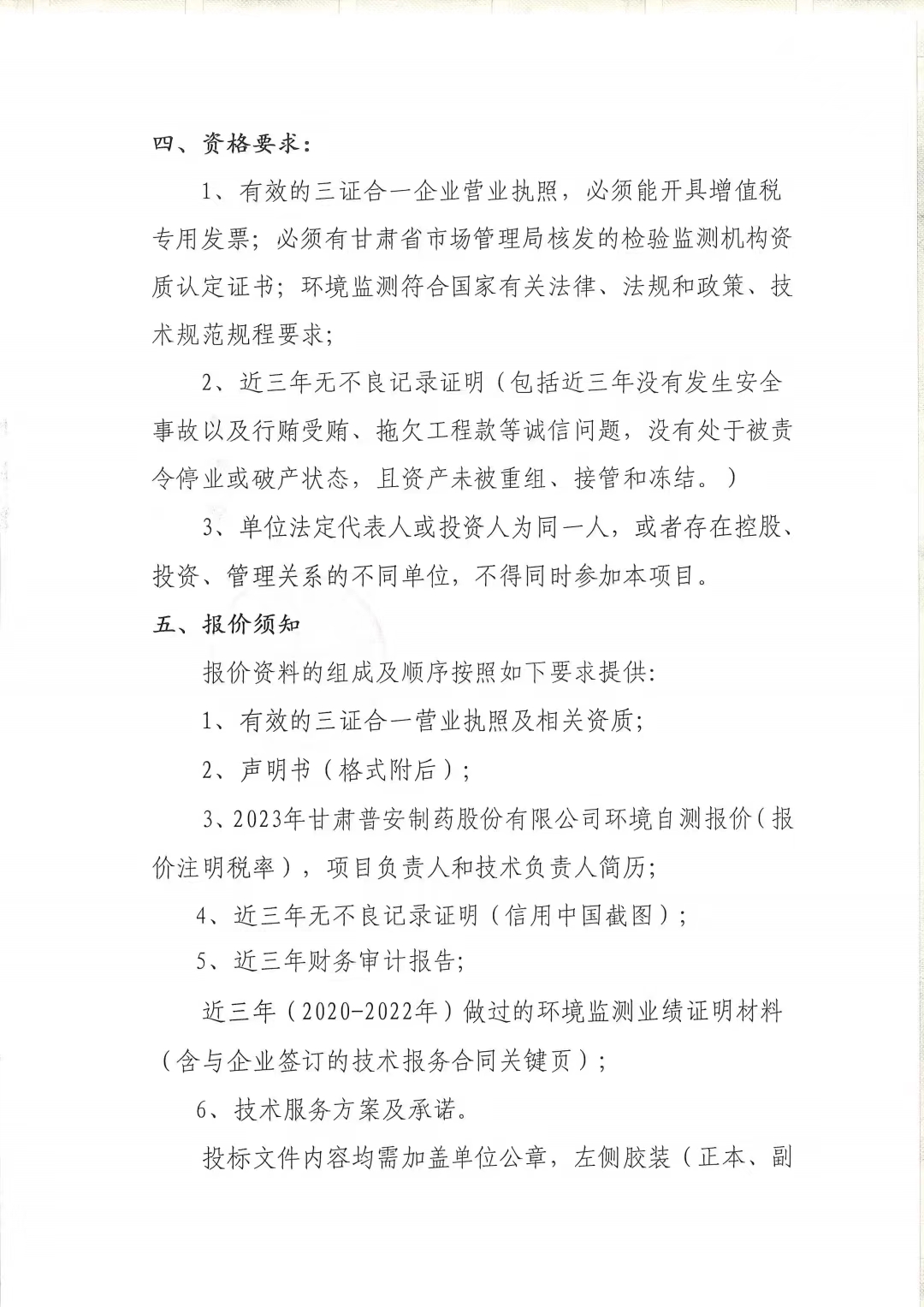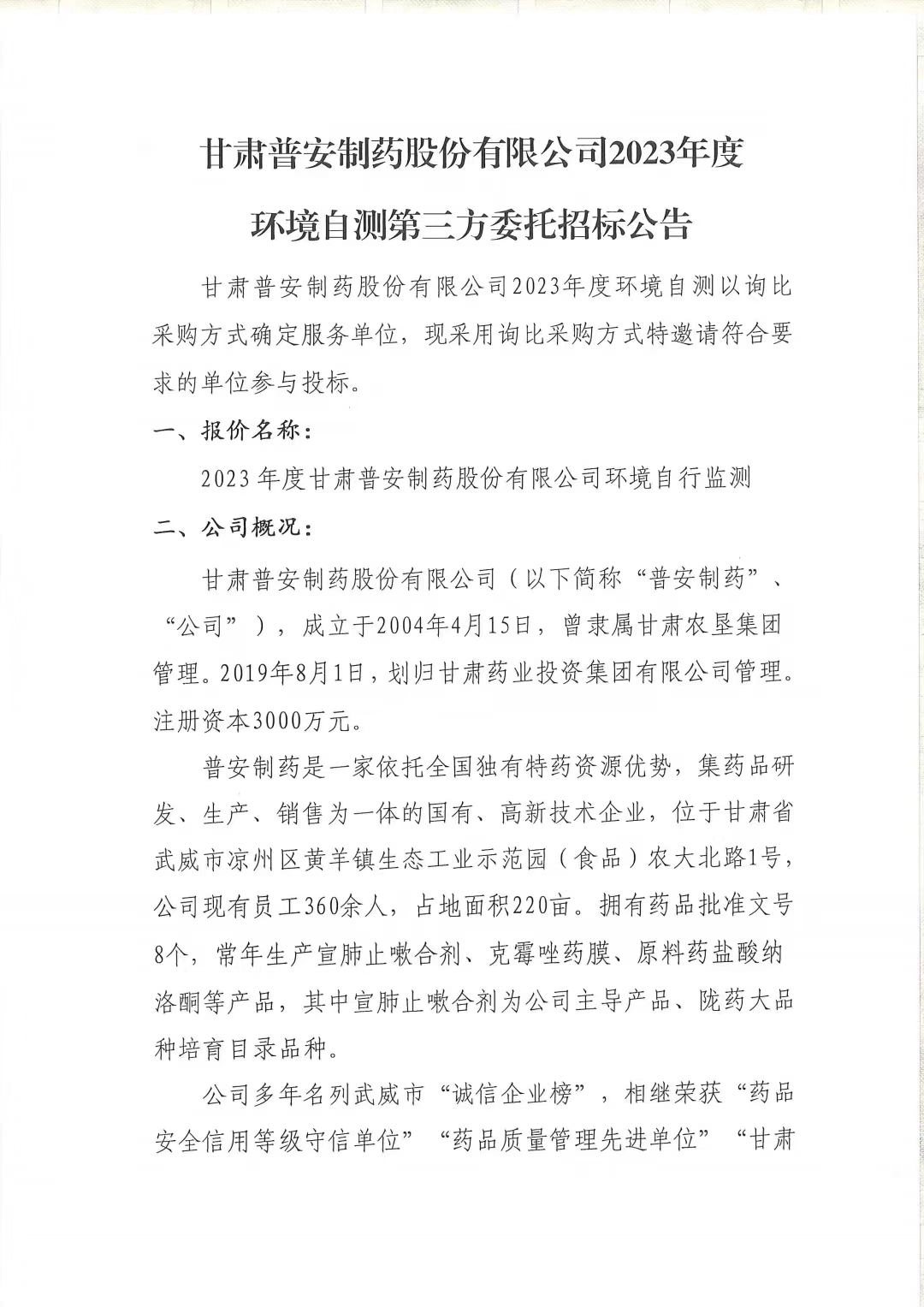 甘肅普安制藥股份有限公司2023年度環(huán)境自測(cè)第三方委托招標(biāo)公告