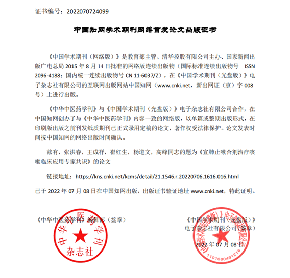 喜訊 !《宣肺止嗽合劑治療咳嗽臨床應(yīng)用專家共識(shí)》完成網(wǎng)絡(luò)版首發(fā)