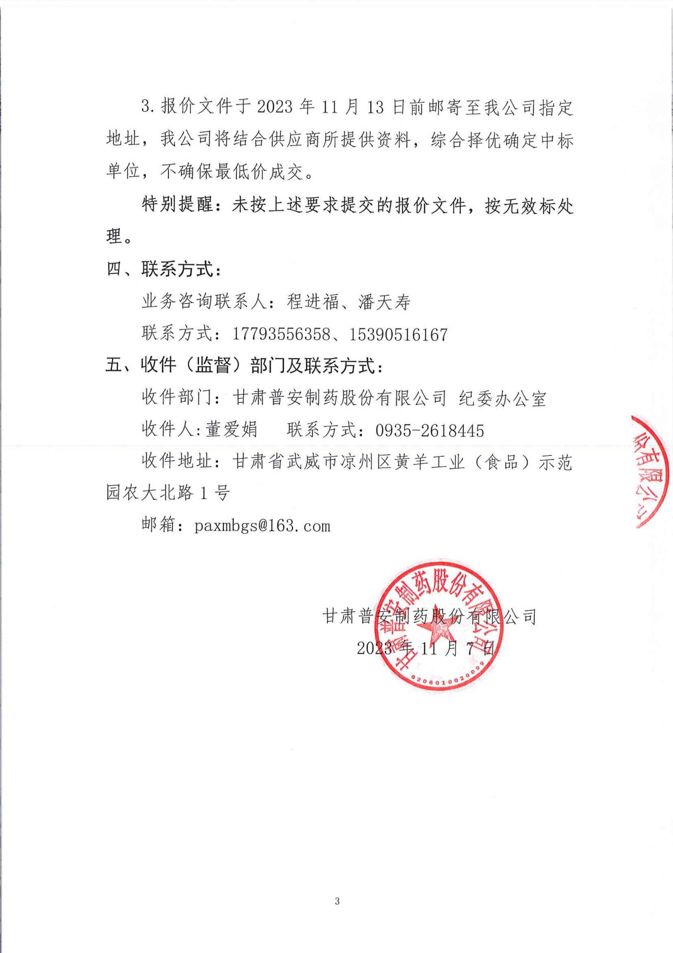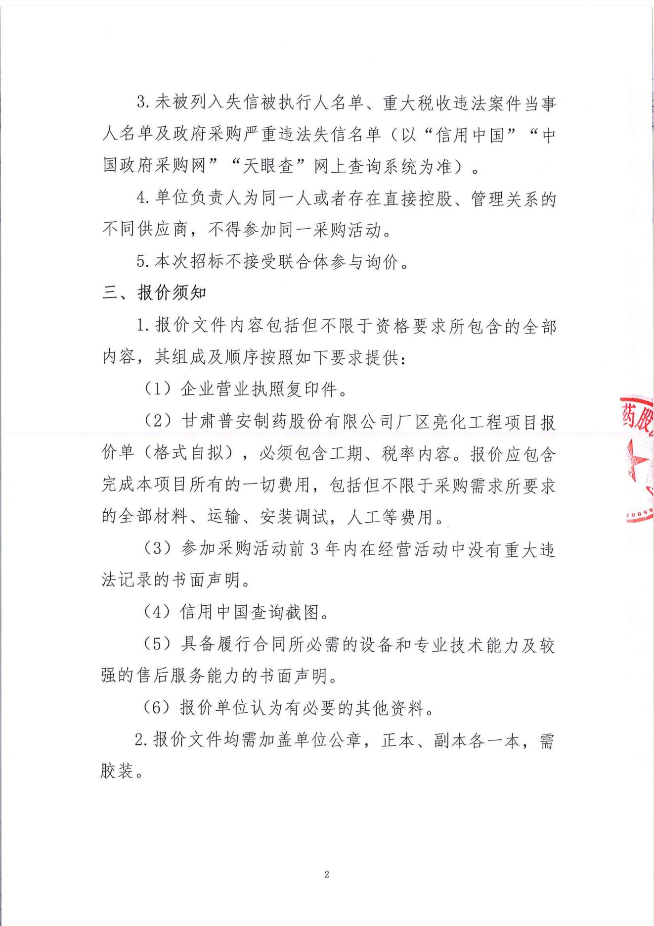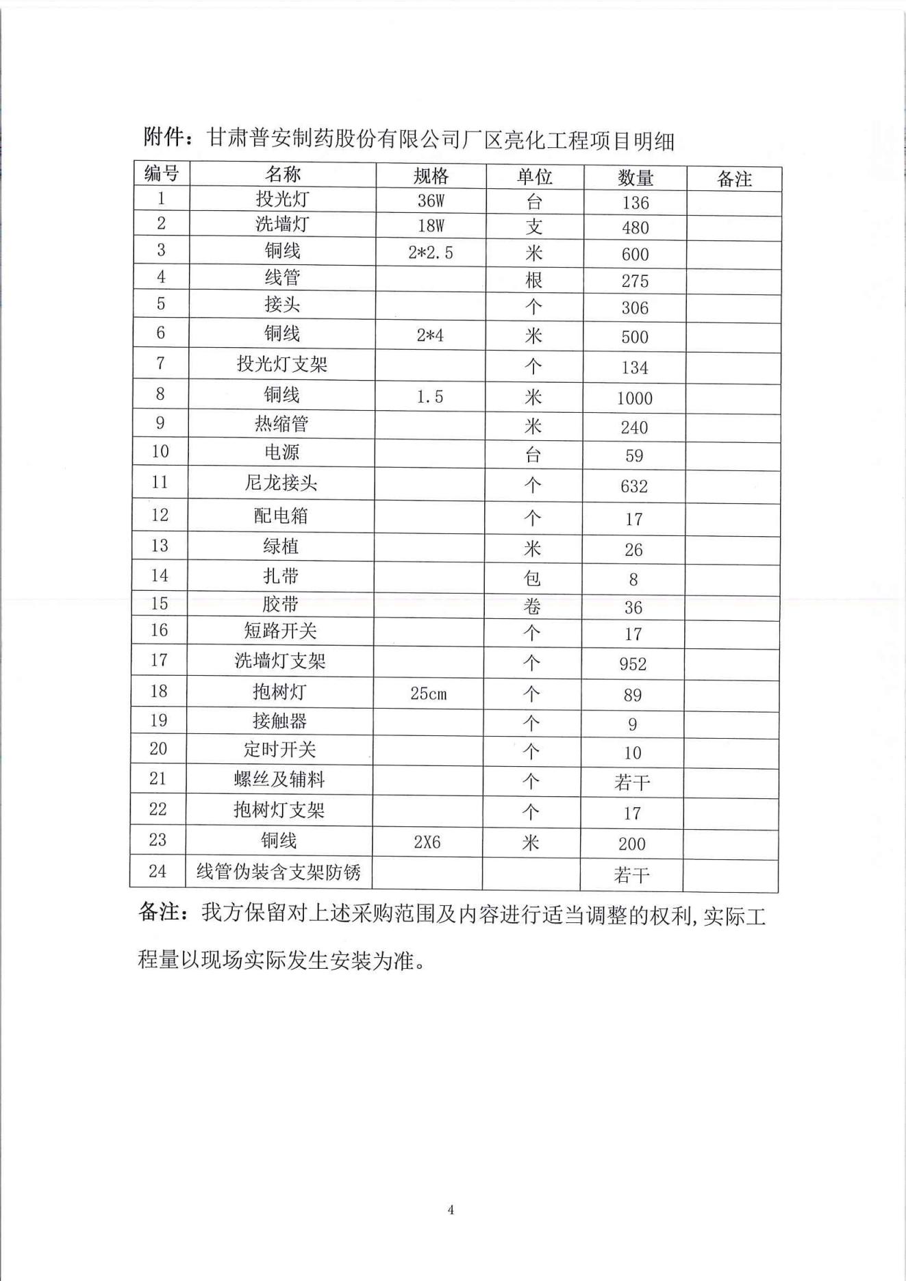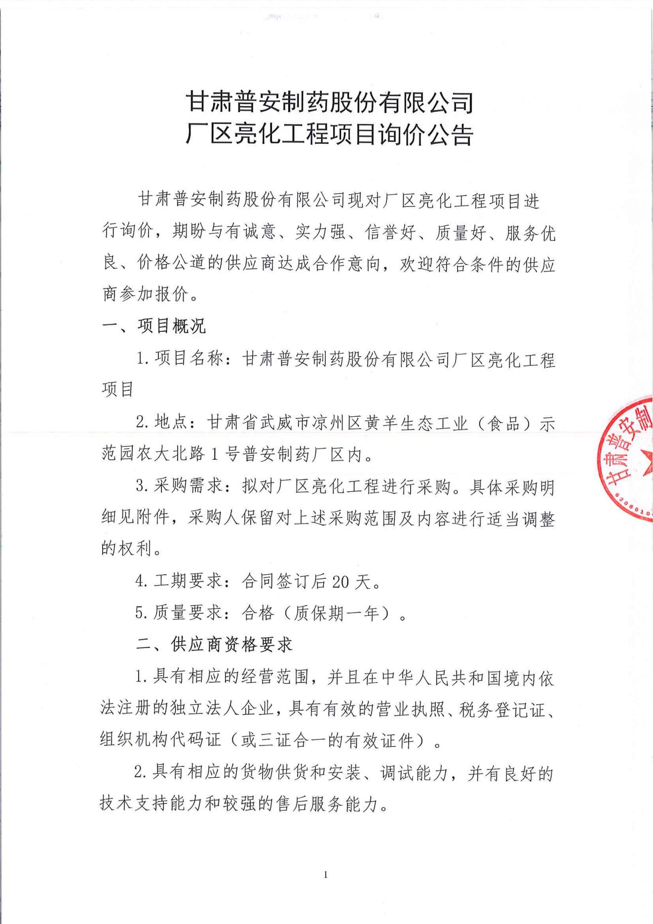 甘肅普安制藥股份有限公司廠區(qū)亮化工程項(xiàng)目詢(xún)價(jià)公告
