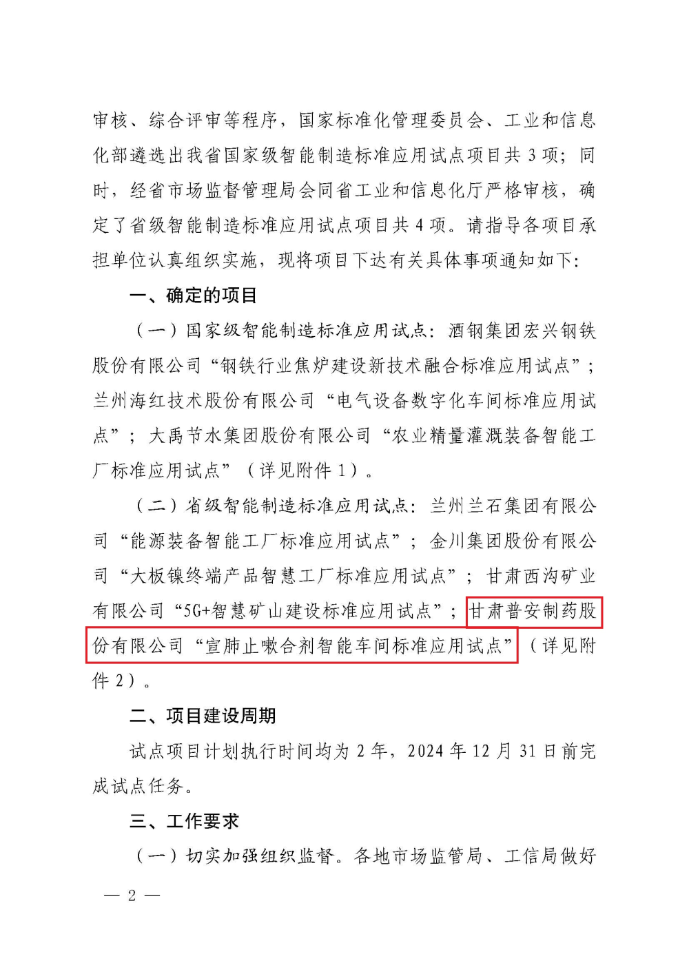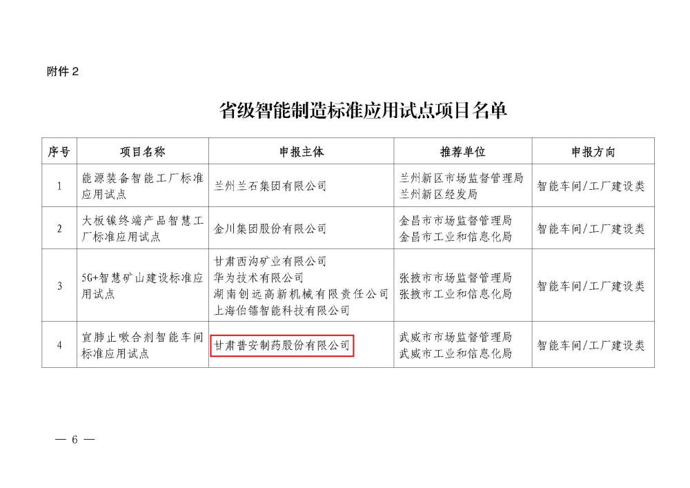 “三抓三促”踐行中 ᅵ 【喜報】甘肅藥業(yè)集團普安制藥入選省級智能制造標準應(yīng)用試點項目名單