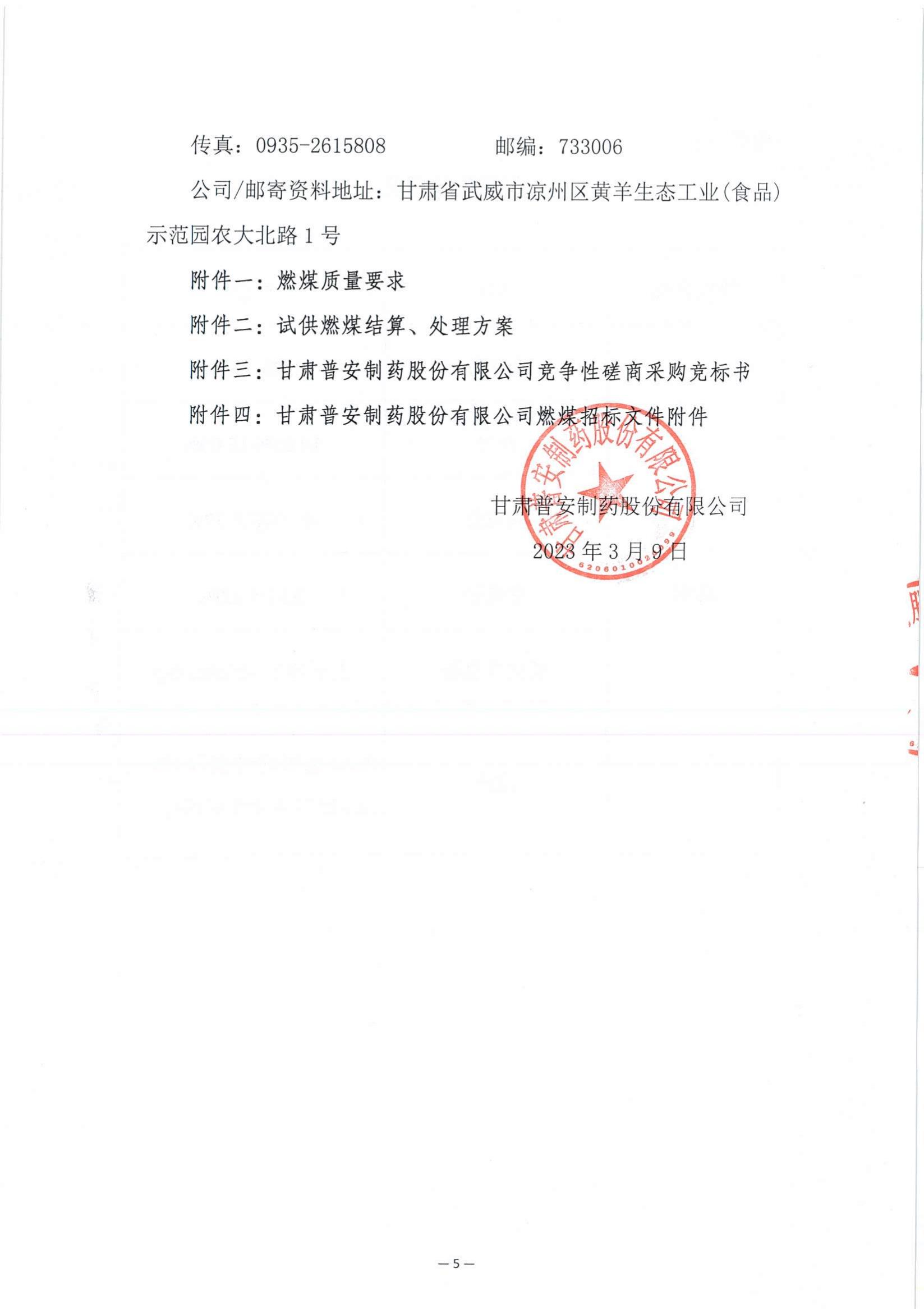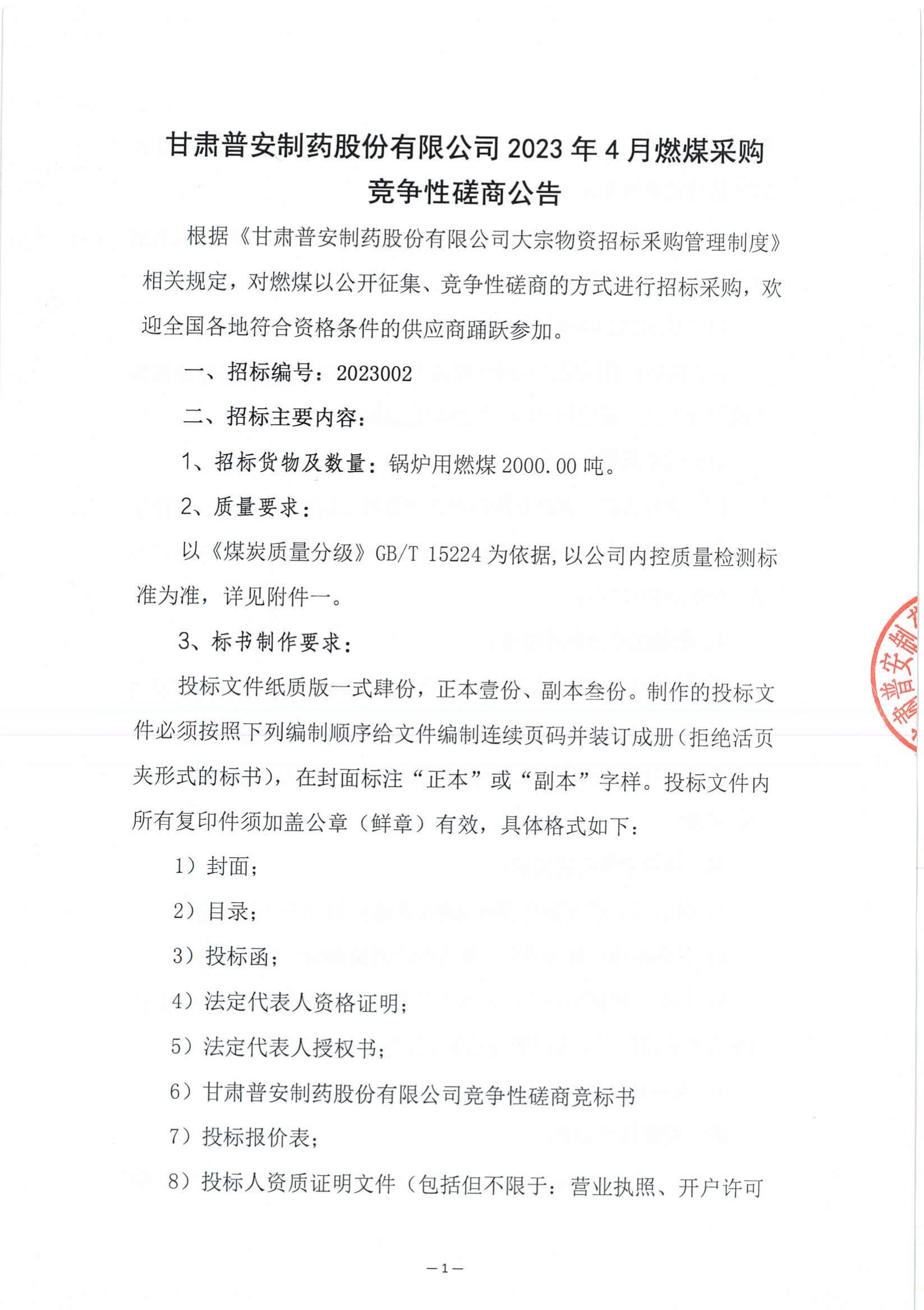 甘肅普安制藥股份有限公司2023年4月燃煤采購(gòu)競(jìng)爭(zhēng)性磋商公告