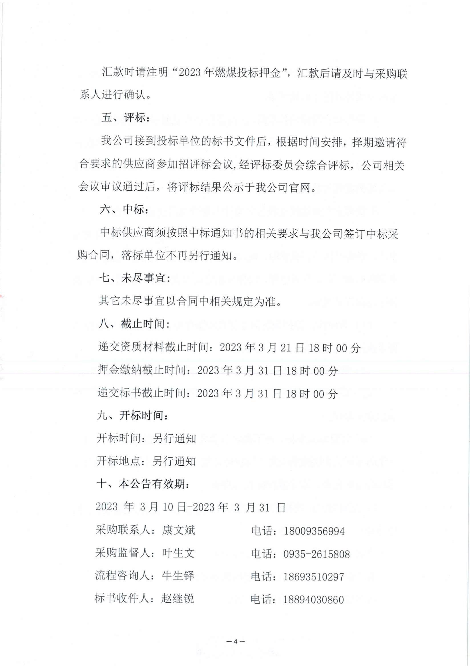 具體內(nèi)容詳見(jiàn)附件:甘肅普安制藥股份有限公司2023年4月燃煤采購(gòu)競(jìng)爭(zhēng)性磋商公告