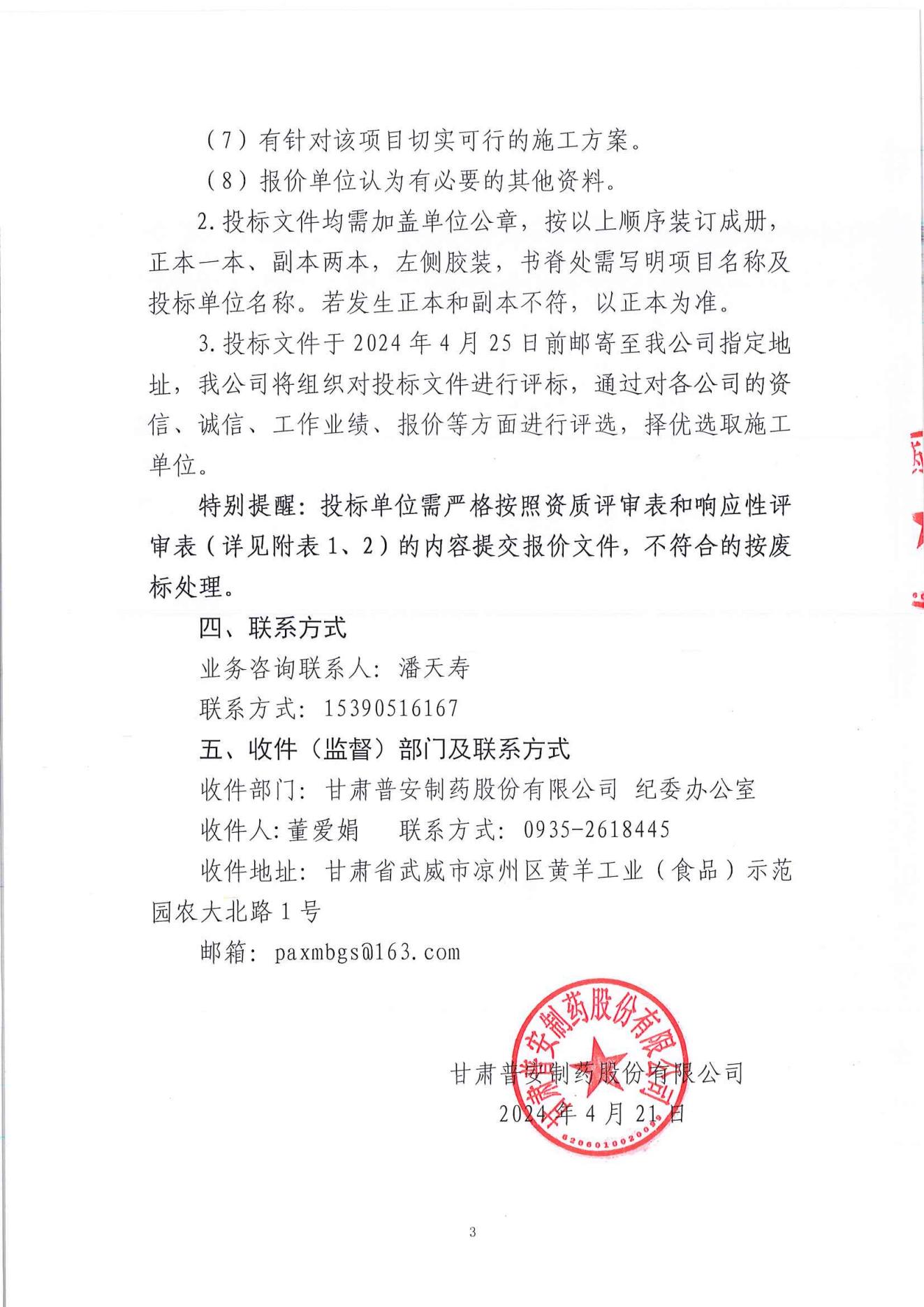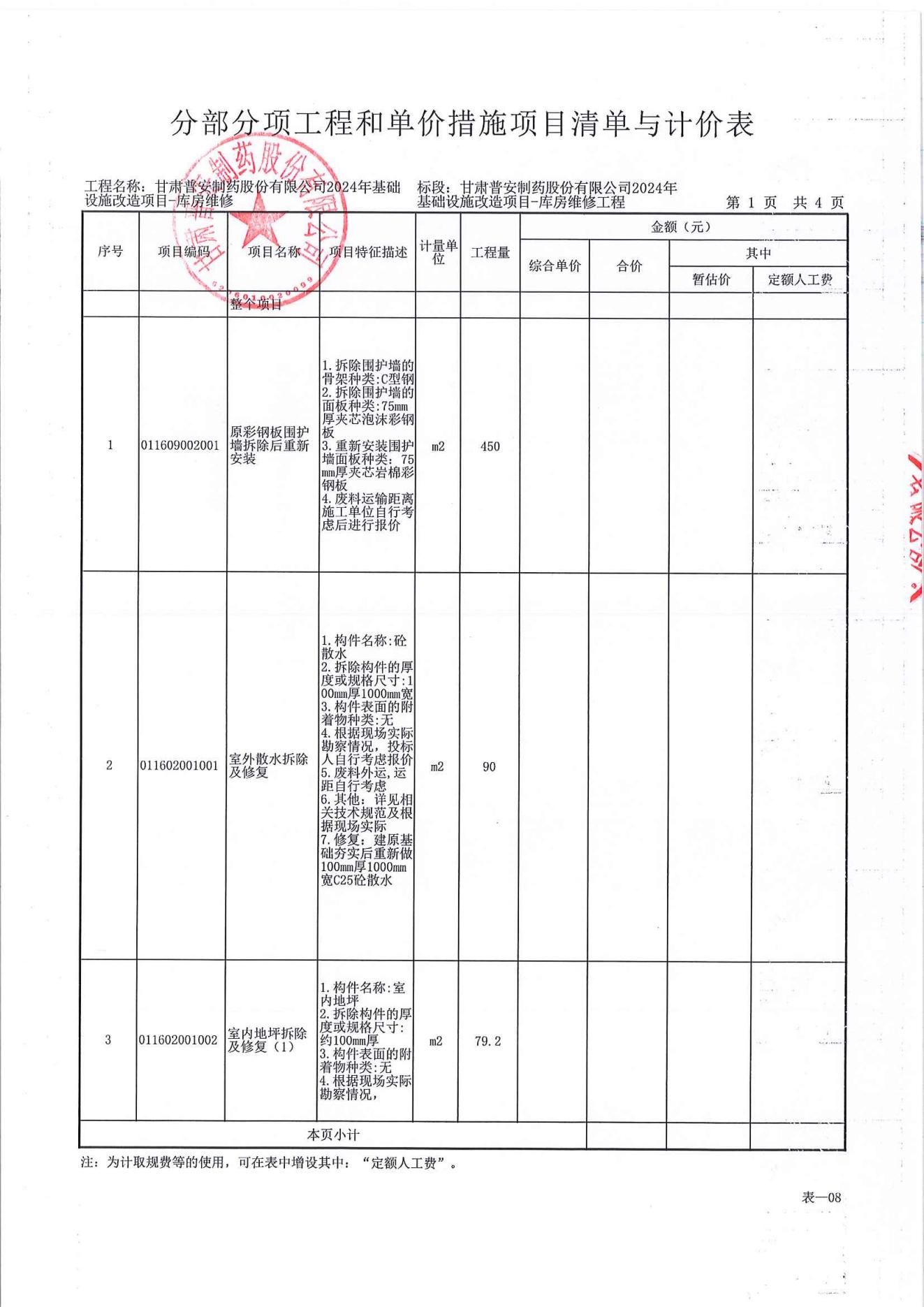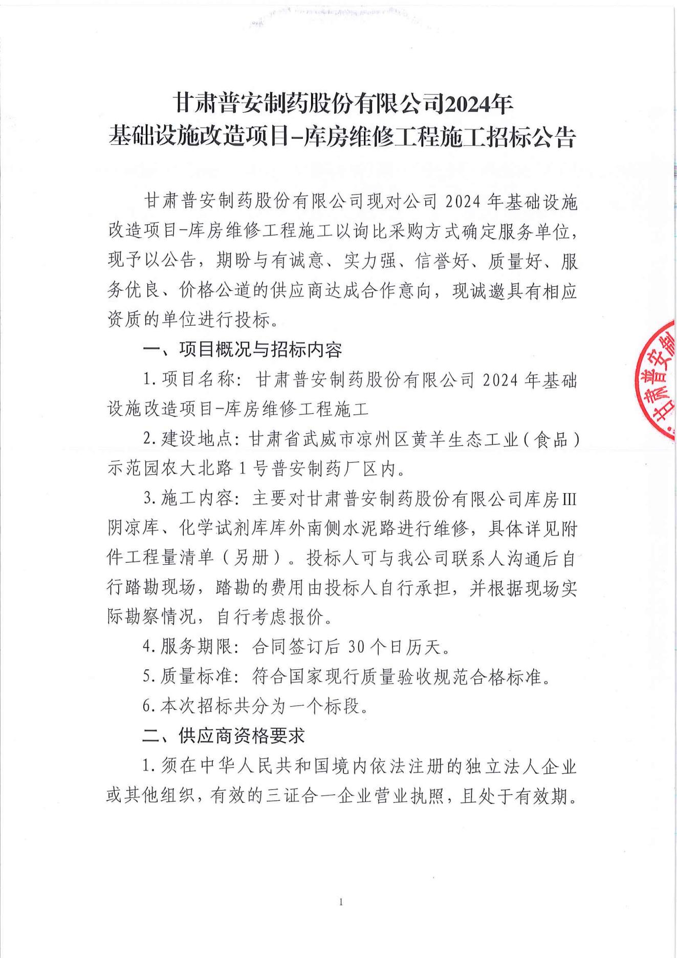 甘肅普安制藥股份有限公司2024年基礎(chǔ)設(shè)施改造項目-庫房維修工程施工招標公告