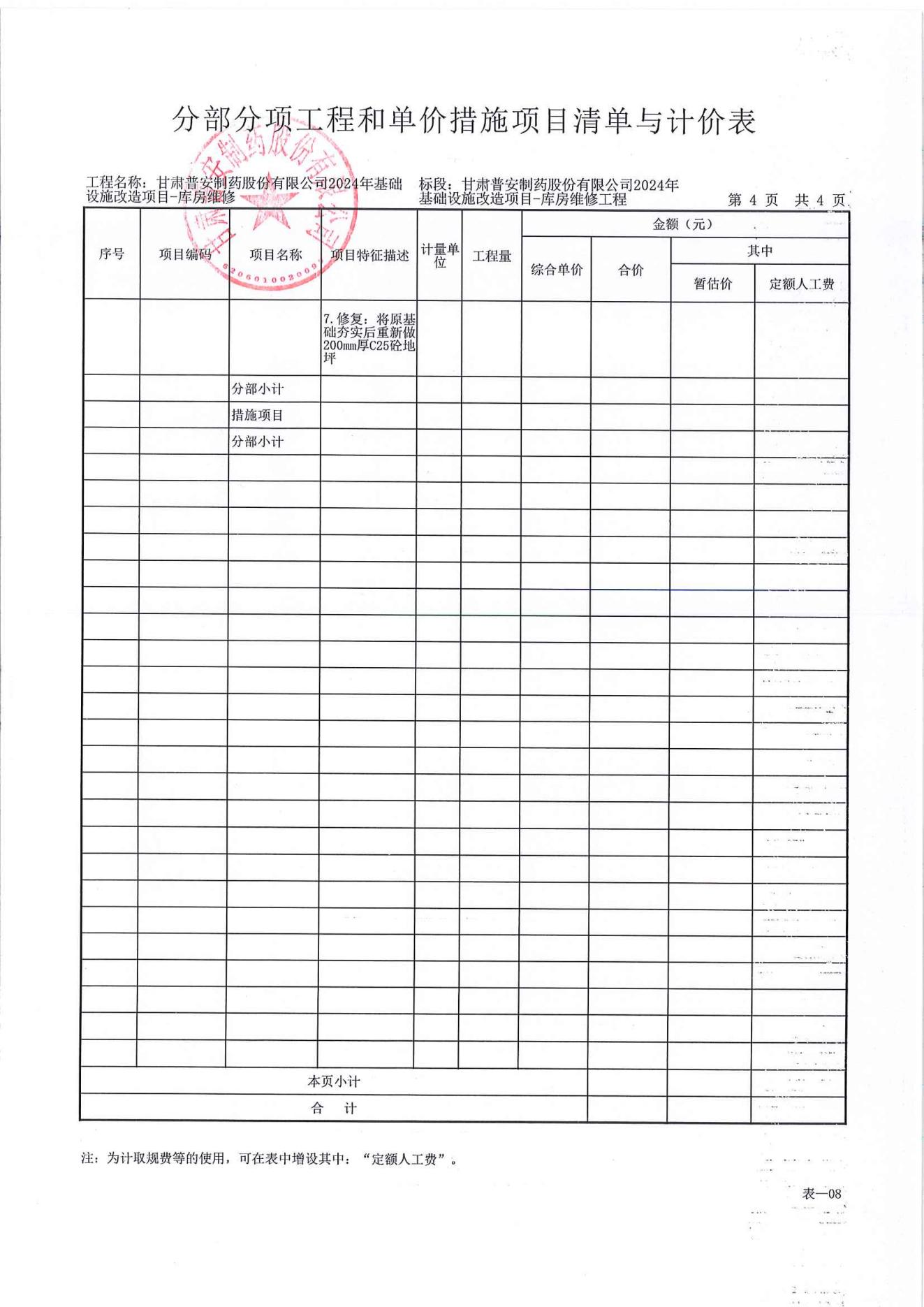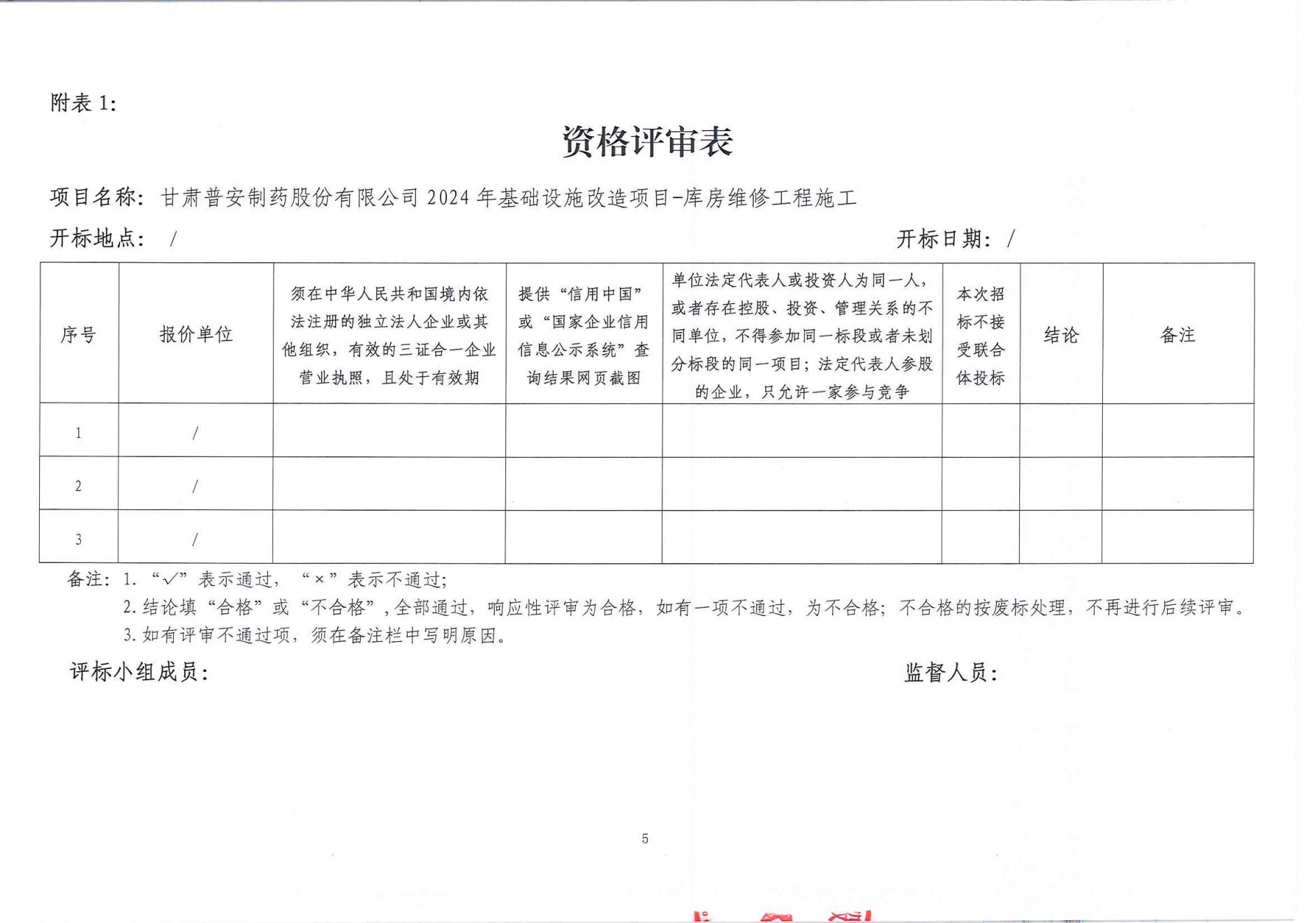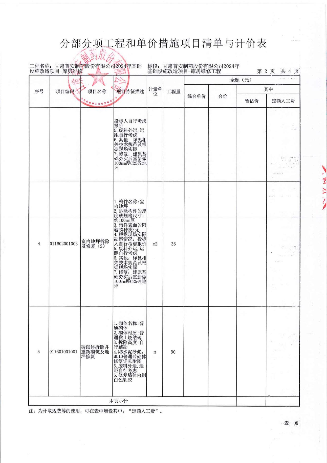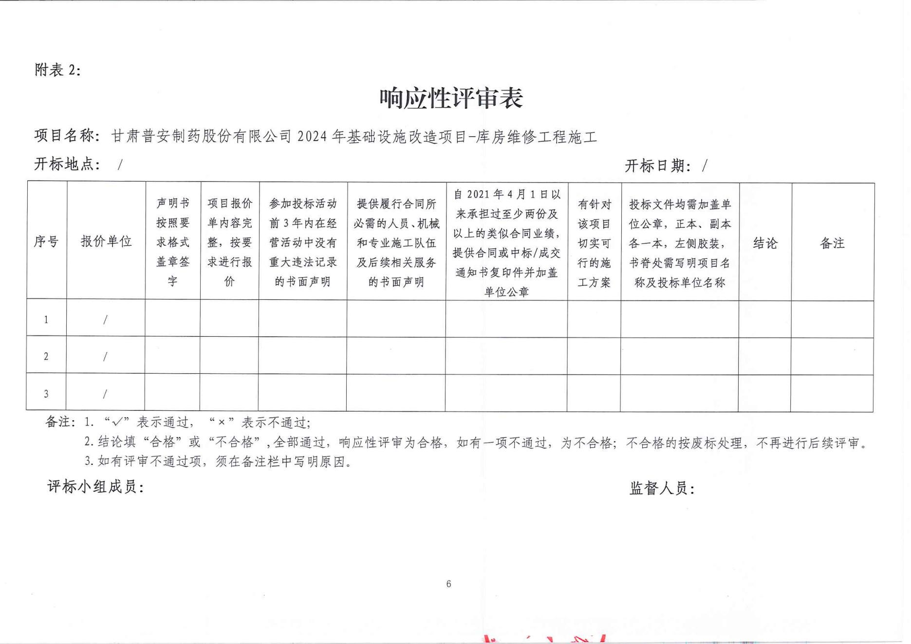 甘肅普安制藥股份有限公司2024年基礎(chǔ)設(shè)施改造項目-庫房維修工程施工招標公告