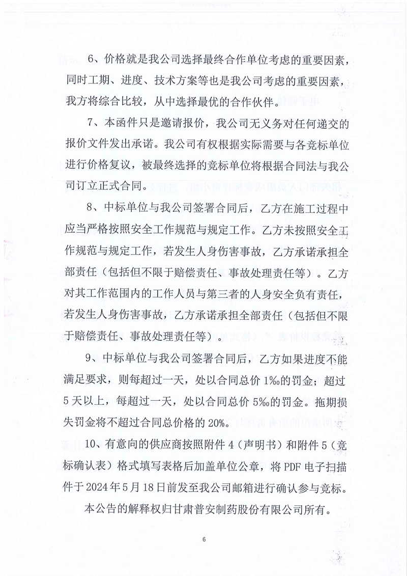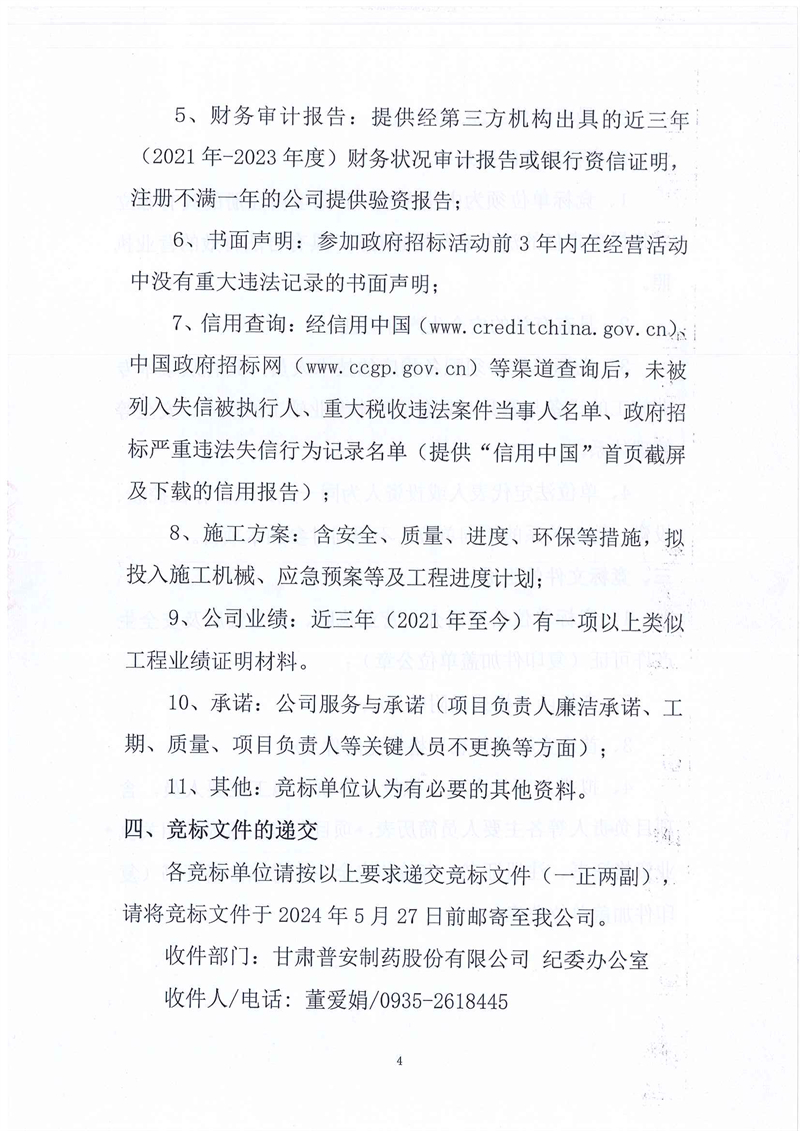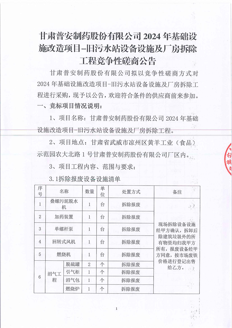 甘肅普安制藥股份有限公司2024年基礎(chǔ)設(shè)施改造項(xiàng)目-舊污水站設(shè)備設(shè)施及廠(chǎng)房拆除工程競(jìng)爭(zhēng)性磋商公告