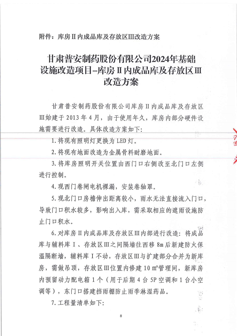 甘肅普安制藥股份有限公司2024年基礎(chǔ)設(shè)施改造項(xiàng)目-庫房Ⅱ內(nèi)成品庫及存放區(qū)Ⅲ改造工程施工招標(biāo)公告