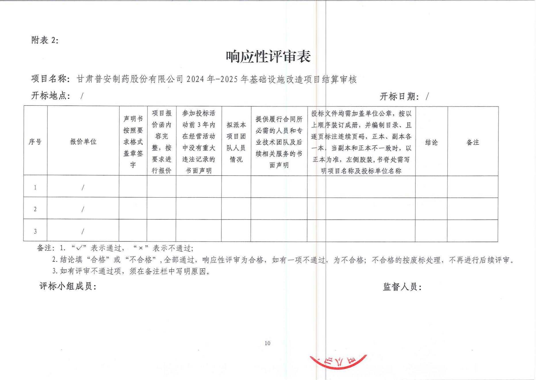 甘肅普安制藥股份有限公司2024年-2025年基礎設施改造項目結算審核服務招標公告