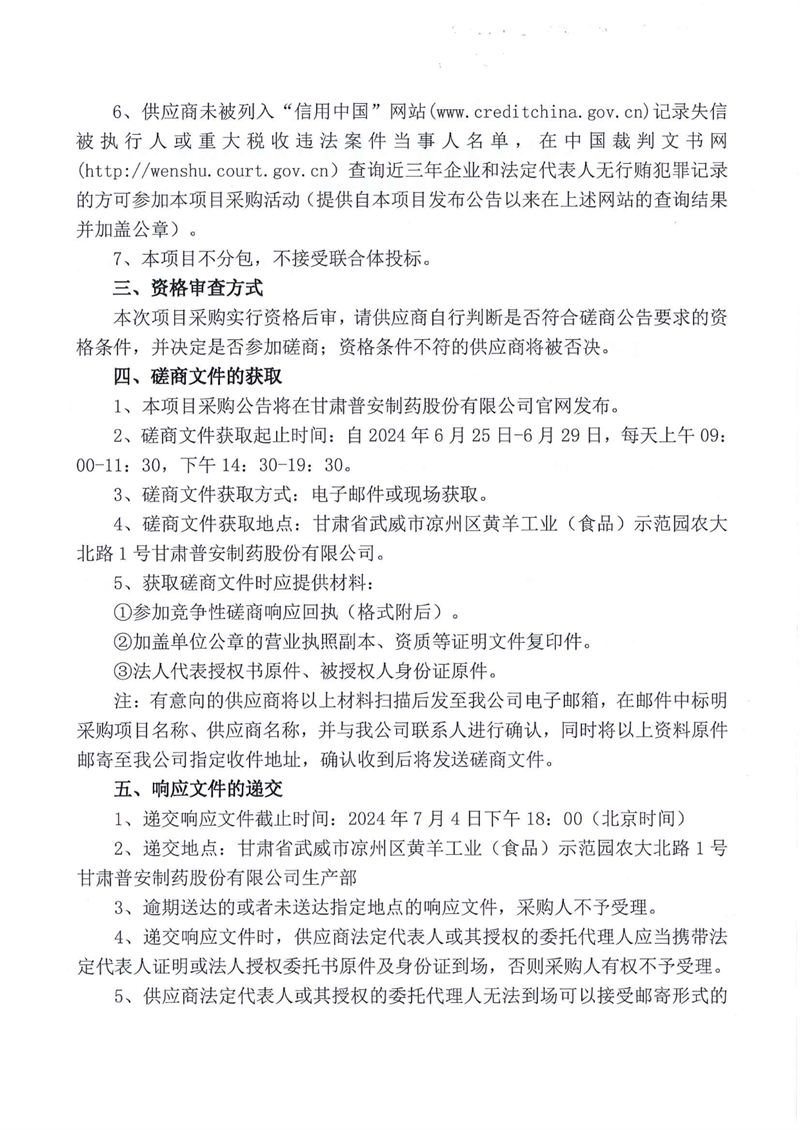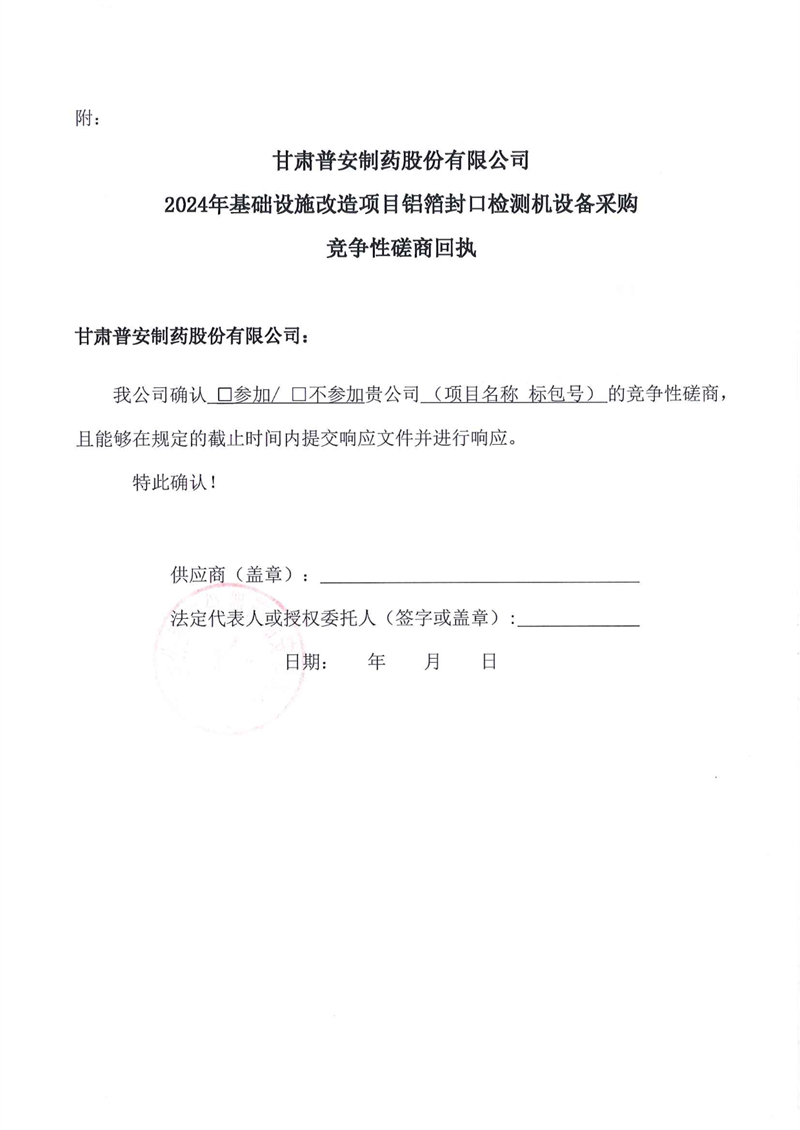 甘肅普安制藥股份有限公司2024年基礎(chǔ)設(shè)施改造項(xiàng)目鋁箔封口檢測(cè)機(jī)設(shè)備采購(gòu)競(jìng)爭(zhēng)性磋商公告