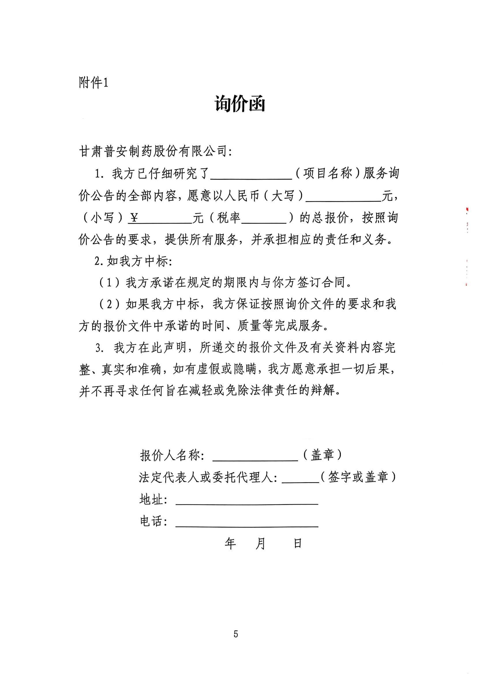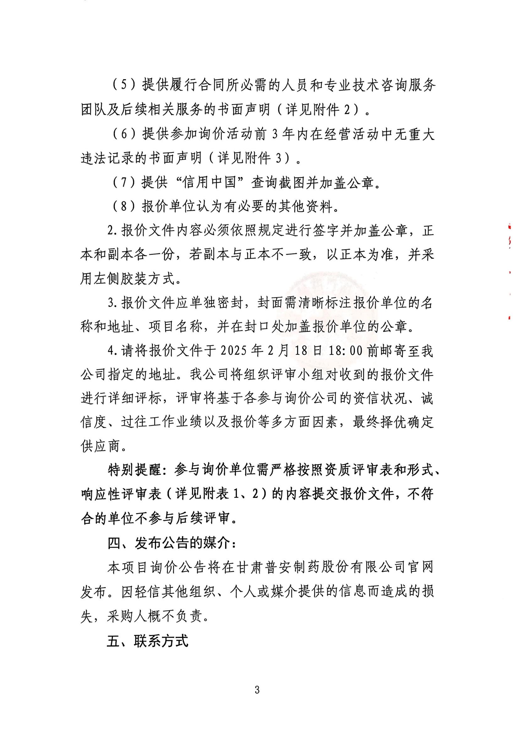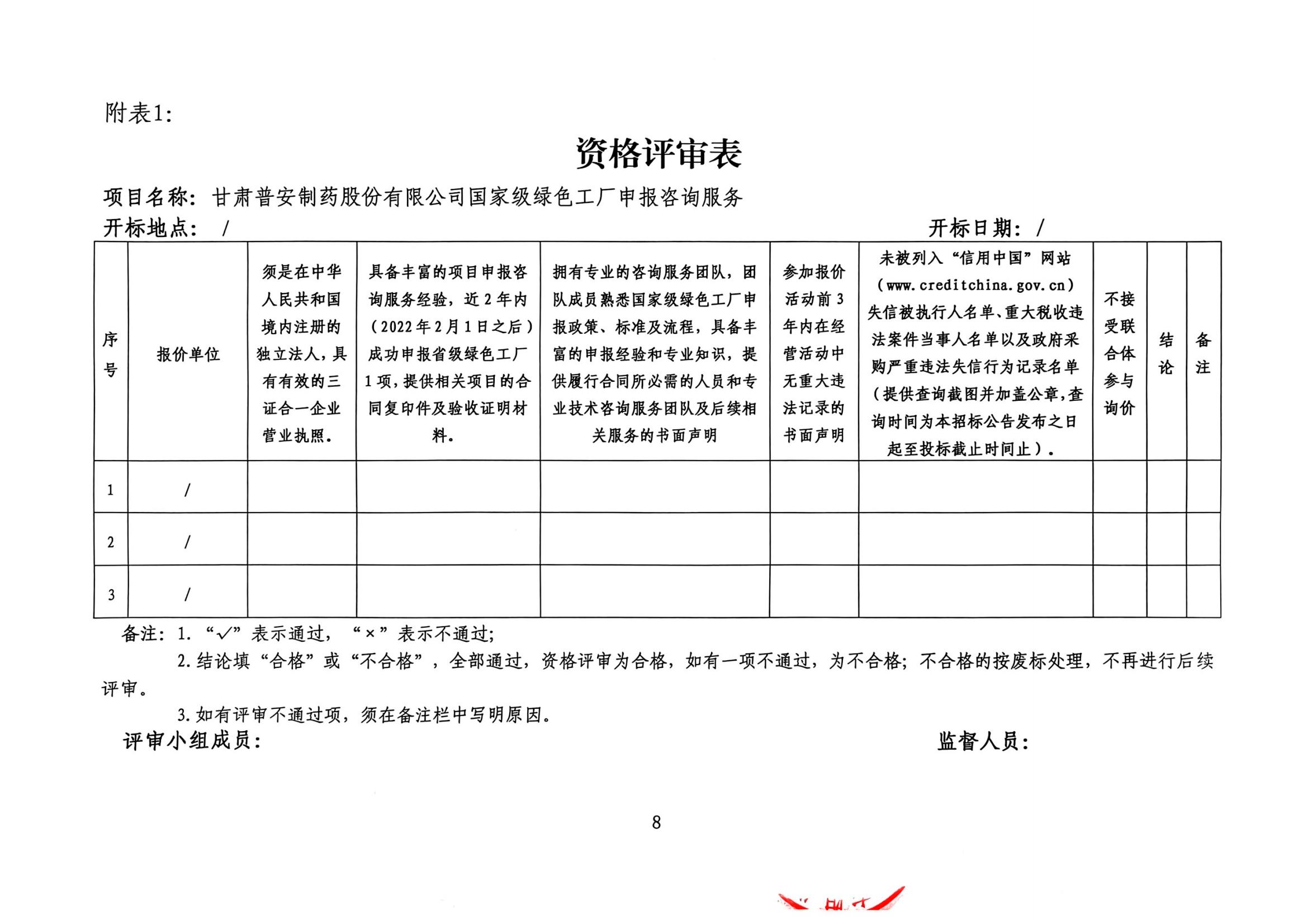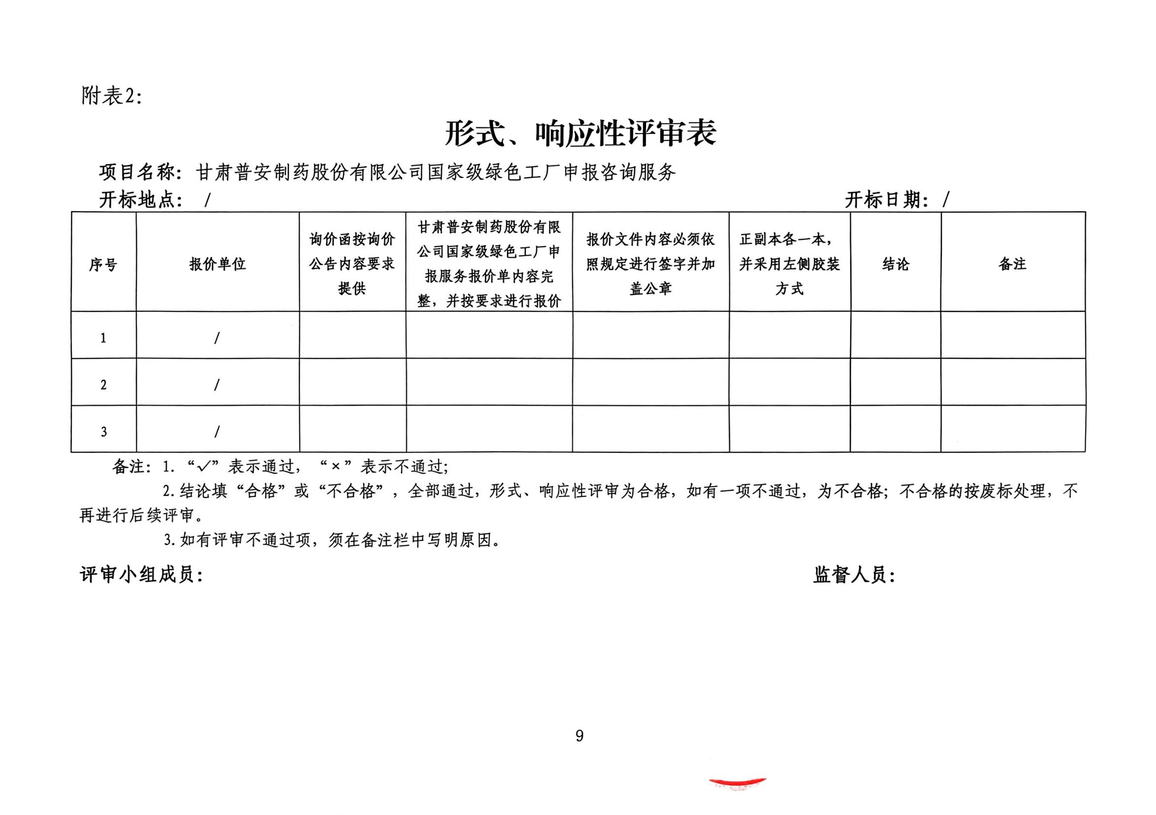 甘肅普安制藥股份有限公司國(guó)家級(jí)綠色工廠申報(bào)咨詢服務(wù)詢價(jià)公告